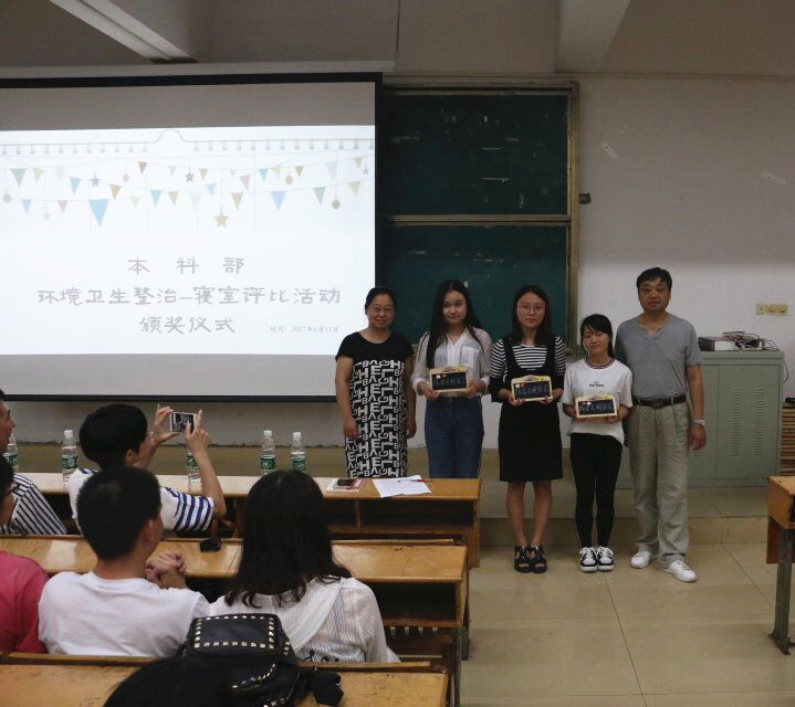 本科部黨建+“五個班”建設系列活動——環(huán)境衛(wèi)生整治宿舍評比活動圓滿結(jié)束。6月15日晚上7點,本次活動頒獎儀式在綜合樓階五教室隆重舉行。出席本次頒獎儀式的有校團委書記、本科部負責人、全體班主任和老師。