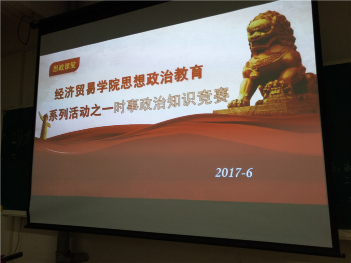 為激發廣大同學關心時事、了解社會,關注學院發展的積極性,6月12日晚7點,經濟貿易(旅游管理)學院學生黨支部在綜合樓階梯教室3組織以“家事,國事,天下事,事事關心”為主題的時事政治知識競賽。