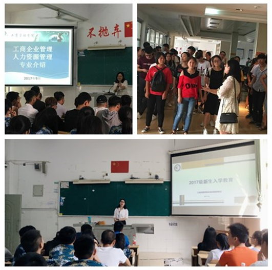 工商管理學(xué)院院長馮弋江教授簡單介紹了學(xué)院基本情況,并對(duì)同學(xué)們提出了三點(diǎn)希望:一是學(xué)會(huì)適應(yīng),爭做環(huán)境的掌控者;二是學(xué)會(huì)學(xué)習(xí),爭做文化的駕馭者;三是學(xué)會(huì)規(guī)劃,爭做時(shí)間的支配者。工商管理學(xué)院黨總支書記胡紅霞教授重點(diǎn)從思考之本、做人之道、做事之法三個(gè)方面闡述了大學(xué)生活的打開方式。工商管理學(xué)院武丹副院長設(shè)身處地地為同學(xué)們?cè)O(shè)立了大學(xué)學(xué)習(xí)生活的五個(gè)小目標(biāo)。工商管理學(xué)院黨政辦公室主任廖國臣簡要介紹了團(tuán)總支、學(xué)生會(huì)的基本情況,并鼓勵(lì)同學(xué)們積極投身學(xué)團(tuán),砥身礪行。此外,老生代表黨開英和新生代表謝山杉也分別發(fā)言。