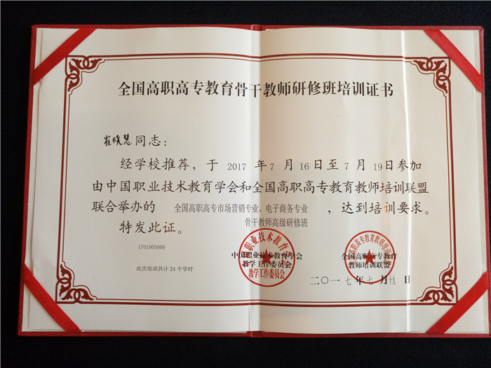 2017年度全國高職高專電子商務專業骨干教師高級研修班于2017年7月16日至19日在云南昆明開班。經濟貿易學院派出黨政辦公室主任崔曉慧老師參加了此次研修班。