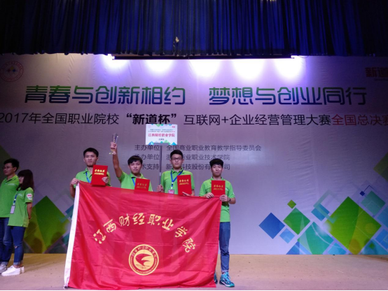 2017年9月25-26日,由全國商業職業教育教學指導委員會主辦、浙江商業職業學院承辦的 “新道杯”互聯網+企業經營管理大賽全國總決賽在浙江杭州舉行。經過層層選拔,來自全國各省共45支代表隊進入了全國總決賽。我校工商管理學院派出了由曹玉敏擔任指導老師、由郭偉、金達財、龔建江和彭志堅等同學組成的代表隊參加總決賽。