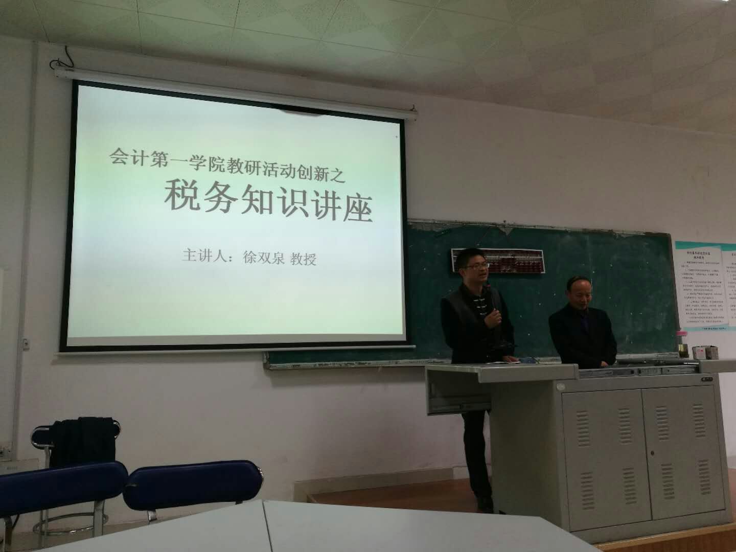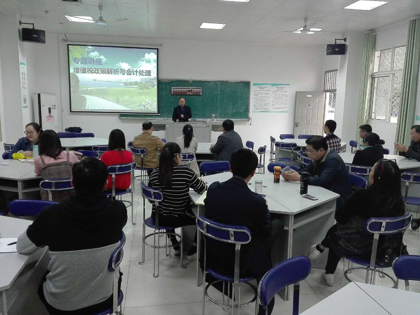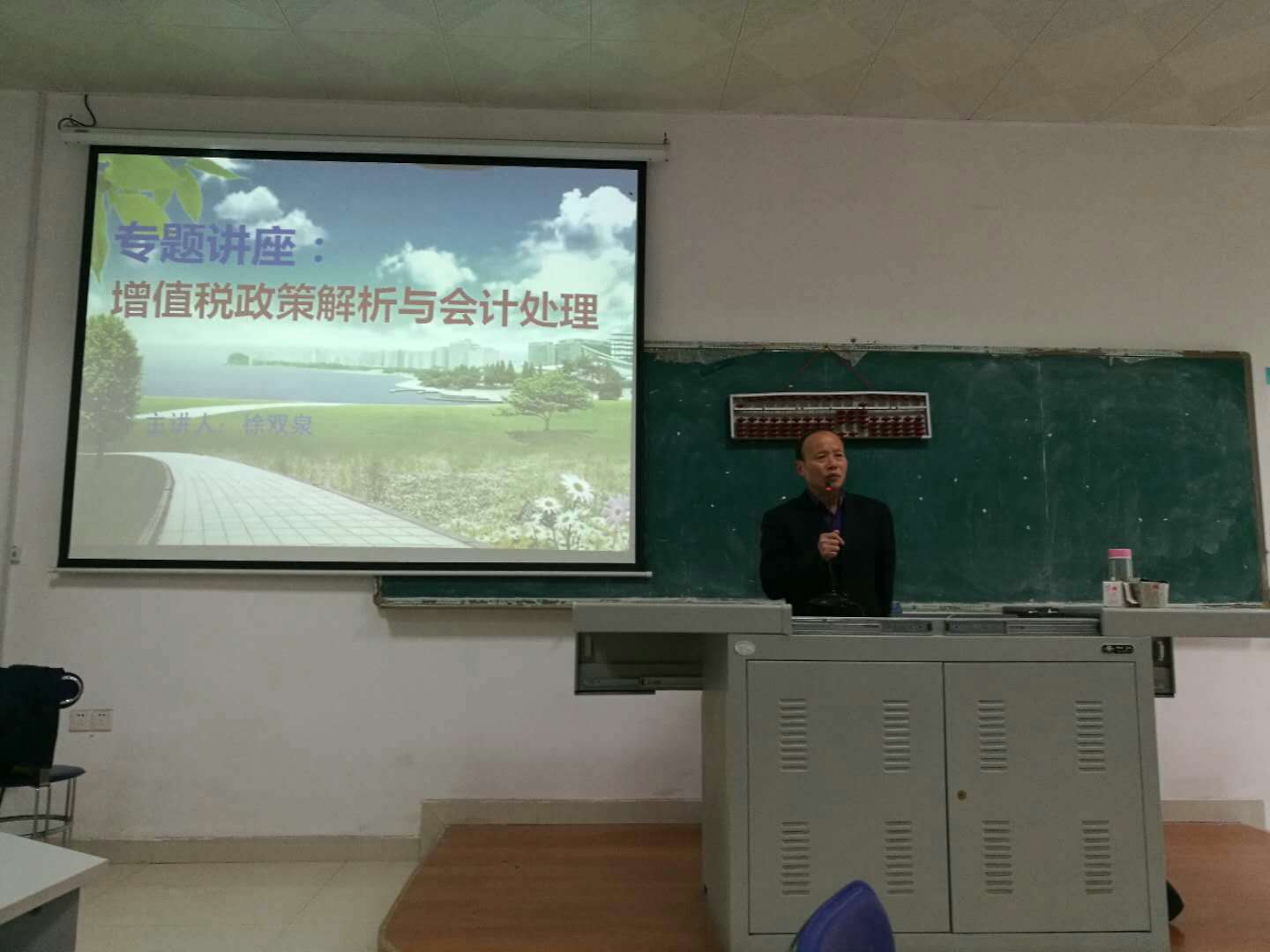 2017年11月8日四點半在實訓(xùn)樓第一實訓(xùn)室,聘請了財稅金融學(xué)院的徐雙泉教授為我院教師做了《增值稅政策解析與會計處理》的專題講座。