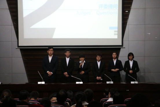 本次比賽分為兩個環節。第一個環節是由同學們先進行自我展示,本科部同學們通過宣傳片簡潔地介紹E-family公司創立背景、特色主營業務和發展潛力等方面。面對激烈的市場競爭,選手們配合PPT詳細地分析了公司今后發展存在的風險及防范措施。最后由評委針對宣傳片和PPT進行提問,面對評委的犀利提問,選手們依舊對答如流,以其幽默而不失睿智的展示博得臺下陣陣熱烈掌聲。第二個環節為情景劇展示,各隊進行精彩演繹,力圖將最好的節目呈現給觀眾和評委。我校本科部代表隊結合公司實際,幽默生動的展示公司整合閑置勞動力方面的優勢,贏得掌聲陣陣。經過幾個小時激烈緊張的比賽,最后評委做出精彩點評,指出選手們的優點與不足之處,參賽選手個個獲益匪淺。