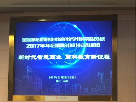 為深入推動(dòng)我院承擔(dān)的江西省高職創(chuàng)新發(fā)展行動(dòng)計(jì)劃——市場(chǎng)營(yíng)銷骨干專業(yè)建設(shè),工商管理學(xué)院武丹副院長(zhǎng)于11月28-29日赴浙江杭州參加了全國(guó)商業(yè)職業(yè)教育教學(xué)指導(dǎo)委員會(huì)2017年年會(huì)暨營(yíng)銷專業(yè)建設(shè)培訓(xùn)班。商務(wù)部流通發(fā)展司副司長(zhǎng)、全國(guó)商指委副主任委員王選慶出席并講話。全國(guó)商指委主任委員、副主任委員、委員以及來(lái)自全國(guó)高中職院校、企業(yè)的代表近300人參加了會(huì)議。本次大會(huì)以新時(shí)代智慧商業(yè),商科教育新征程為主題。
