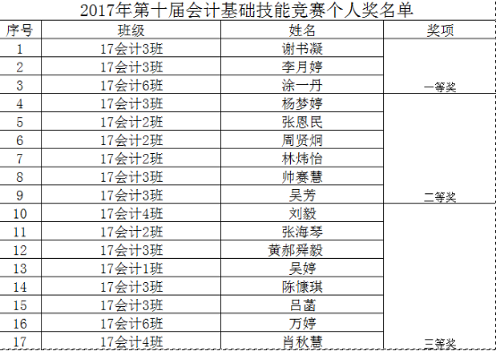 此次競賽活動的成功舉辦極大地豐富了我院會計專業學生的第二課堂,調動了學生專業學習的積極性,同時也為學生提供了一個檢驗自我與施展才華的舞臺,培養與提高了學生的專業運用與操作能力。(附:獲獎名單)