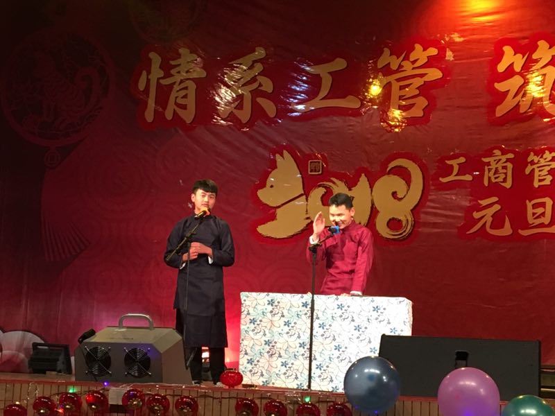 辭舊靈雞歌日麗,迎新瑞犬報年豐。工商管理學院于12月25日在學校英才交流中心舉辦了主題為“情系工管,筑夢遠航”的2018元旦晚會。工商管理學院黨政班子、評委及1000余名師生共同觀看了晚會。