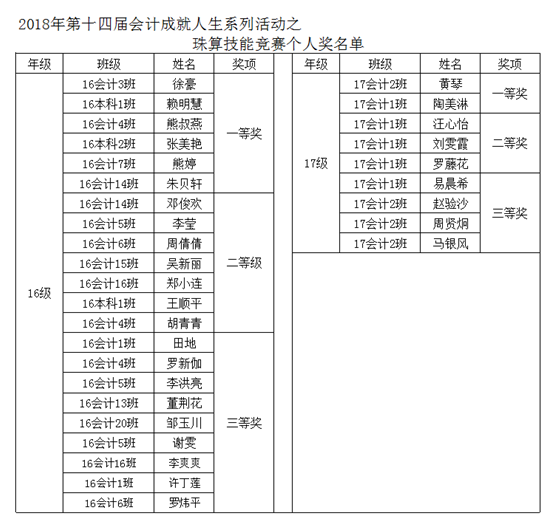 為進(jìn)一步落實(shí)“四具備”人才培養(yǎng)目標(biāo),提升同學(xué)們的學(xué)習(xí)興趣和實(shí)際動手操作能力,檢驗(yàn)專業(yè)技能水平,豐富校園文化生活,5月10日下午,會計(jì)第一學(xué)院在教學(xué)樓608教室、609教室舉辦了第十四屆“以會計(jì)成就人生”系列活動——珠算技能競賽,來自我校本科部16級會計(jì)學(xué)專業(yè)和我院16、17級會計(jì)專業(yè)的近200余名學(xué)生參加了此次競賽活動。
