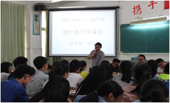 第三階段——召開教學座談會。為了更細致了解各年級學生的專業學習和生活狀況,5月10日、11日下午以教研室牽頭,分年級分別在教學樓509、會計基本技能實訓室一組織召開了2017-2018學年第二學期期中教學座談會,教研室主任及課程組教師代表出席座談會,來自學院16、17級各班近150名余名學生代表參加了座談會。與會學生代表主要圍繞目前課堂教學、機房條件、生活條件等幾個方面存在的問題,積極發言。學生代表們認真反饋平時收集、了解到的相關的信息,同時也對學院生活條件、教學條件、教學管理方面給出了建議。