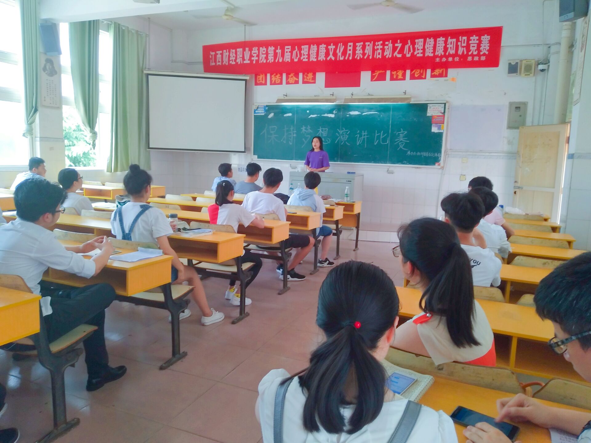 為了豐富校園文化活動,展現當代大學生的青春風采。經濟貿易(旅游管理)學院于5月25日晚在教學樓714舉辦了“夢想飛揚”為主題的演講比賽。