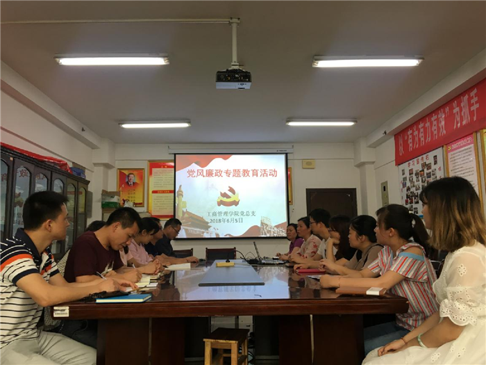 為了更好地加強黨風廉政教育,進一步提高全體黨員教師對黨風廉政建設重要性的認識,6月5日下午,工商管理學院黨總支在綜合樓903會議室組織開展黨風廉政專題教育活動,全體黨員教師參加。