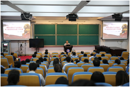 為深入貫徹十九大精神,準確把握十九大關于黨建工作的新要求,堅持黨要管黨,全面從嚴治黨,走在時代前列。6月19日下午,機關黨總支在綜合樓學術報告廳舉辦了專題黨課講座。講座由江西省委教育工委組織部、江西省教育廳人事處調研員楊聯愚同志主講,校黨委委員、副校長張成斌主持,機關黨總支136位黨員同志聆聽了講座。