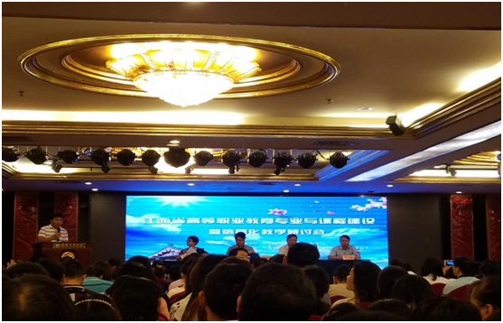 本次研討會主要議程為專題講座及經驗分享。會上,江西省教育廳職成處楊涇洪處長對《江西省高等職業教育創新發展行動計劃(2015-2018年)實施方案》進行了解讀;教育部職業院校信息化教指委秘書長、沙洲職業工學院錢東東院長分析了信息化條件下職業院校教師教學能力新要求;高等教育出版社智慧職教發展研究中心葉波主任分享了信息化教學服務體系建設與應用的相關經驗;全國外經貿職業教育教學指導委員會委員、浙江金融職業學院質量辦章安平主任和在線開放課程建設與應用專家、深圳職業技術學院教學名師王靜霞教授分享了職業院校信息化大賽參賽經驗并對相關作品做了深度解析。