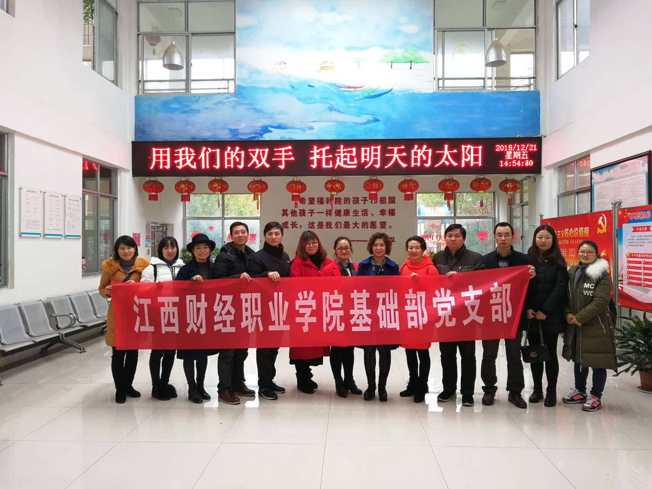 2018年12月21日下午,我校基礎(chǔ)課教學(xué)部黨支部全體黨員在支部書記郭紅的帶領(lǐng)下,前往九江市兒童福利院開展志愿者活動,并送去慰問品。福利院的老師們對黨員們的到來表示歡迎和感謝。