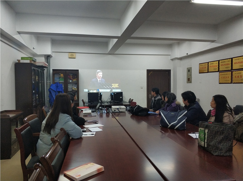 為貫徹落實中央、省委和學校深入開展“弘揚愛國奮斗精神、建功立業新時代”的有關工作部署要求,教育引導黨員教師不忘初心、牢記使命,自覺弘揚愛國奮斗精神,積極為學校發展貢獻智慧和力量,2018年12月25日,外國語學院組織全體黨員在綜合樓918辦公室觀看《全國“時代楷模”黃大年同志先進事跡報告會》實況錄像。