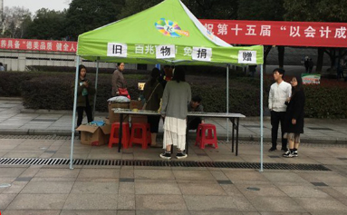 隨后兩天,志愿者們利用課余時(shí)間在學(xué)校噴泉廣場(chǎng)輪班“擺攤設(shè)點(diǎn)”,繼續(xù)宣傳“物盡其用,人行其善”的活動(dòng)倡議,并統(tǒng)一收集同學(xué)們捐贈(zèng)的舊衣舊物。