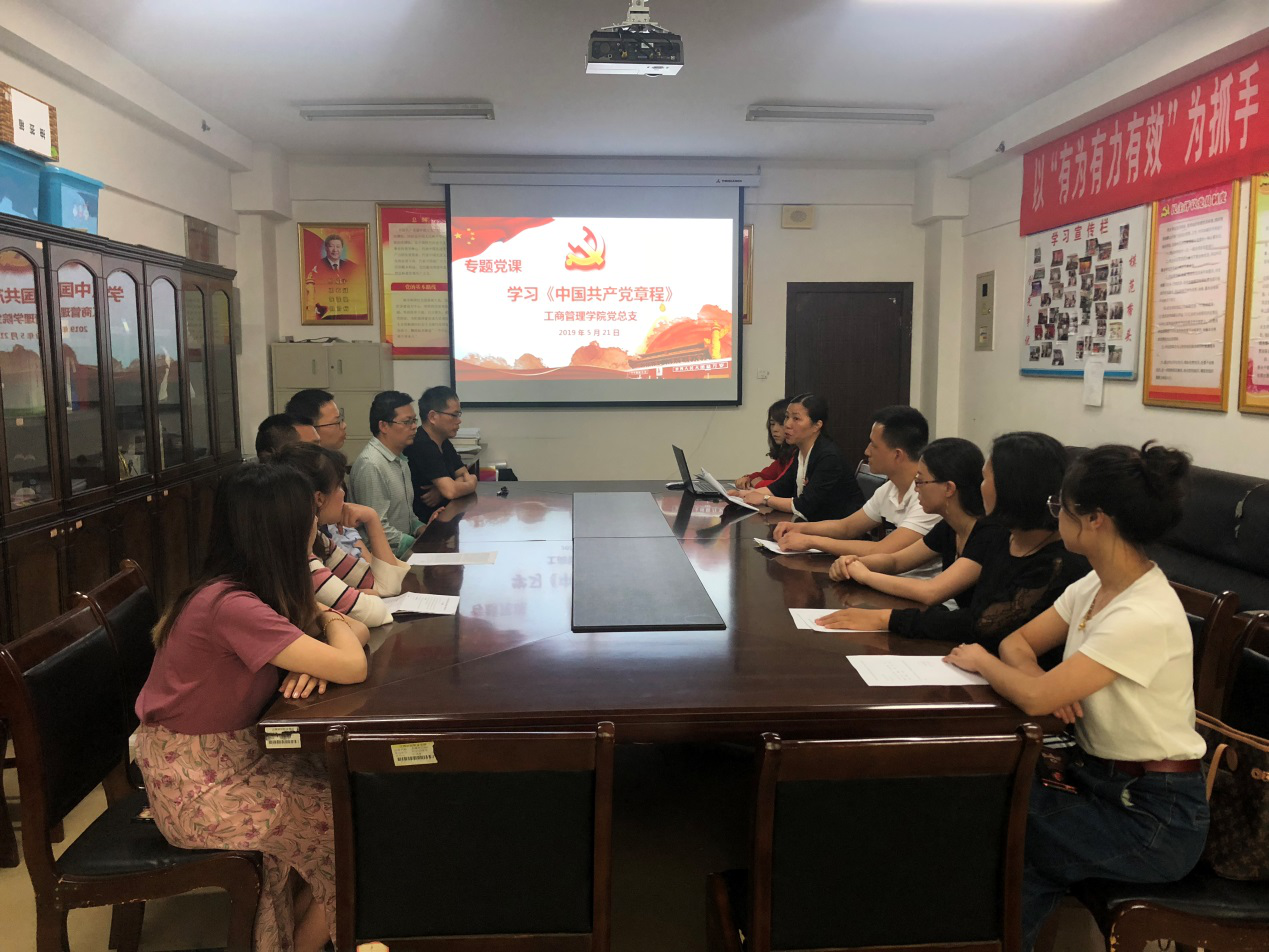 為深入學(xué)習(xí)貫徹習(xí)近平新時(shí)代中國(guó)特色社會(huì)主義思想和十九大精神,持續(xù)深入推進(jìn)“兩學(xué)一做”學(xué)習(xí)教育常態(tài)化制度化,落實(shí)中央全面從嚴(yán)治黨要求,工商管理學(xué)院黨總支于5月21日下午5:00在綜903室開(kāi)展專題黨課學(xué)習(xí)培訓(xùn)——學(xué)習(xí)《中國(guó)共產(chǎn)黨章程的歷史沿革》。