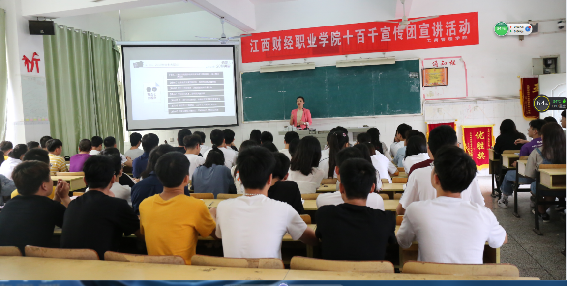整場宣講活動主題鮮明,內容豐富,數據詳實,實事聚焦,全面且深刻地提高了學生對2019年全國“兩會”精神的認識,有助于進一步增強學生的中國特色社會主義道路自信、理論自信、制度自信、文化自信,有助于進一步增強學生的愛國之情和民族自豪感,并激勵學生奮發有為、為國奉獻的青春壯志。
