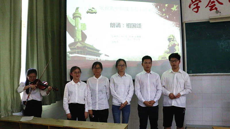 9月29日下午,本科部團總支、學生會在我院教學樓310教室開展了以“不忘初心、牢記使命”為主題-----獻禮祖國七十周年中華誦活動。參加本次活動的有本科部劉玉兵、陳楠老師、團總支學生會全體成員。同學們在朗誦中慷慨激昂的表達了對祖國母親的熱愛、對祖國七十華誕的深情祝福。活動由學術部朗誦的《祖國頌》開場,生吾炎黃,育我華夏。代之有為,必報中華!華夏民族,必將更加燦爛輝煌!配樂朗誦《我和我的祖國》在巫寧致同學小提琴的伴奏下,格外的優雅深情。