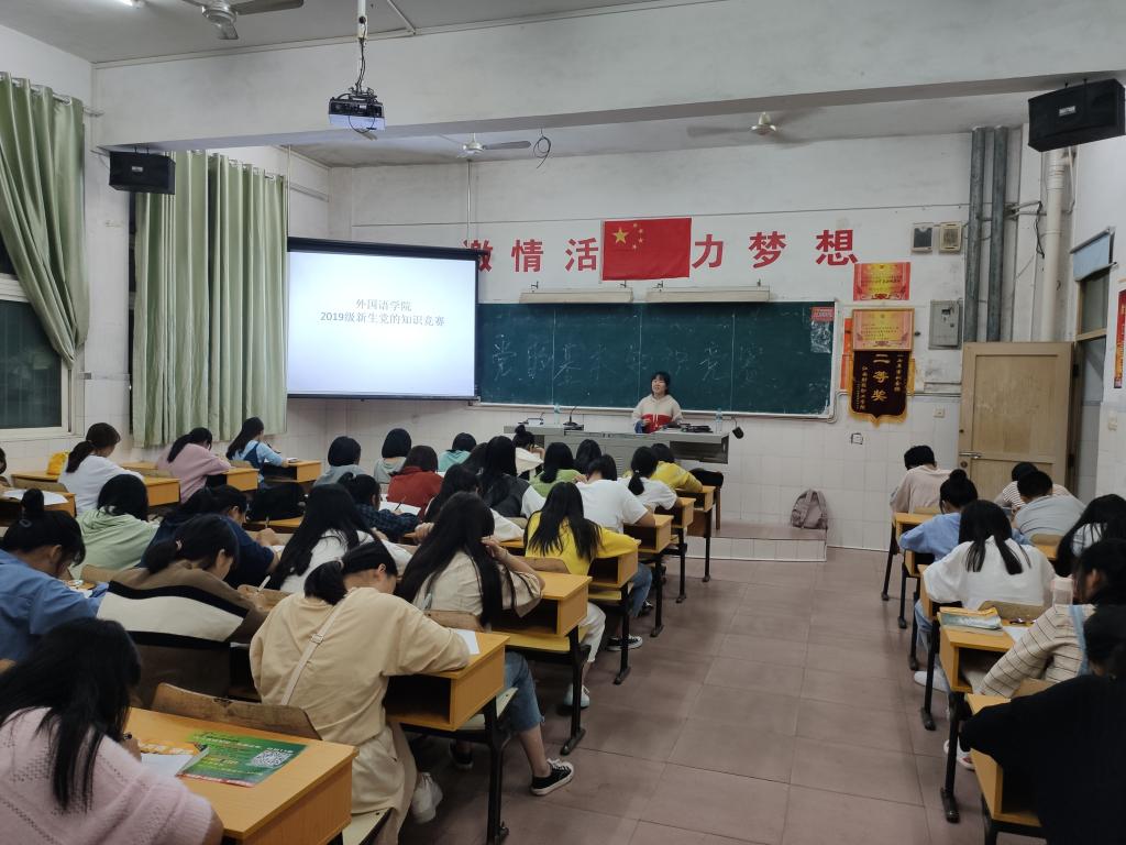 為深入學習貫徹習近平新時代中國特色社會主義思想和黨的十九大精神,扎實推進“兩學一做”學習教育常態化制度化,引導廣大青年學生堅定共產主義遠大理想和中國特色社會主義共同理想,聽黨話,跟黨走,不忘初心,牢記使命,外國語學院于2019年10月10日在教學樓101、103、104、317教室舉辦了“黨的基本知識”競賽,2019級全體新生參加了此次活動。