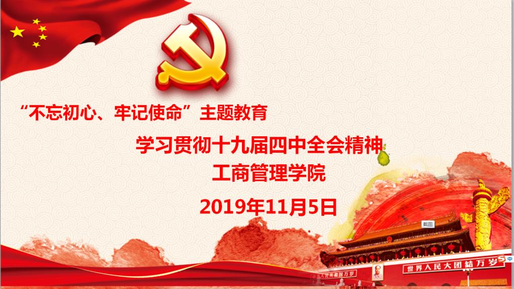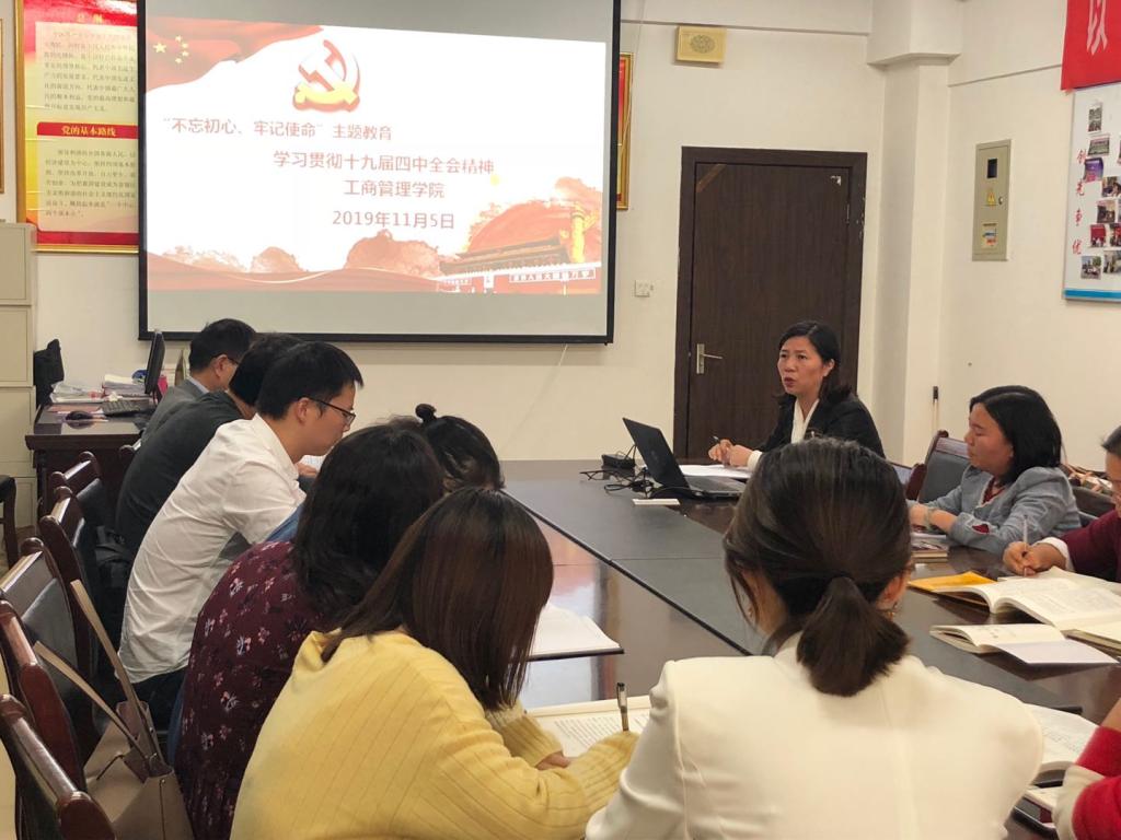 根據習近平總書記在“不忘初心、牢記使命”主題教育工作會議上的重要講話精神,為牢牢把握“不忘初心、牢記使命”主題,持續推進“兩學一做”學習教育常態化制度化,深入學習貫徹習近平新時代中國特色社會主義思想,工商管理學院于11月5日在綜903會議室組織全體教職工學習黨的十九屆四中全會精神,會議由黨總支書記胡紅霞同志主持。