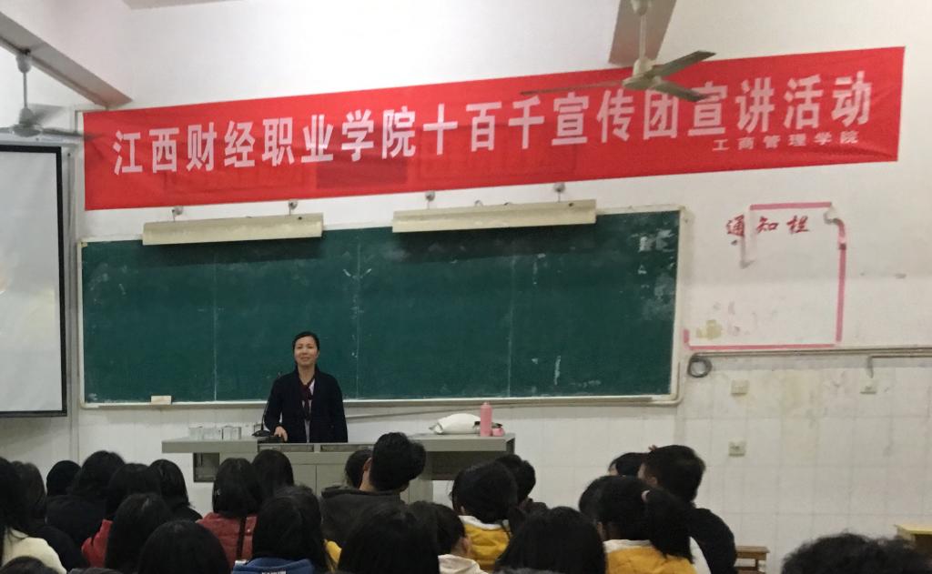 為認真做好黨的十九屆四中全會精神的宣傳宣講工作,全面推進全會精神“三進”工作要求,抓實抓好進教材、進課堂、進頭腦工作。工商管理學院于12月10日下午在校新時代文明實踐中心開展十九屆四中全會精神宣講教育活動,活動邀請工商管理學院黨總支書記、我校新時代文明實踐中心宣講員胡紅霞教授主講。