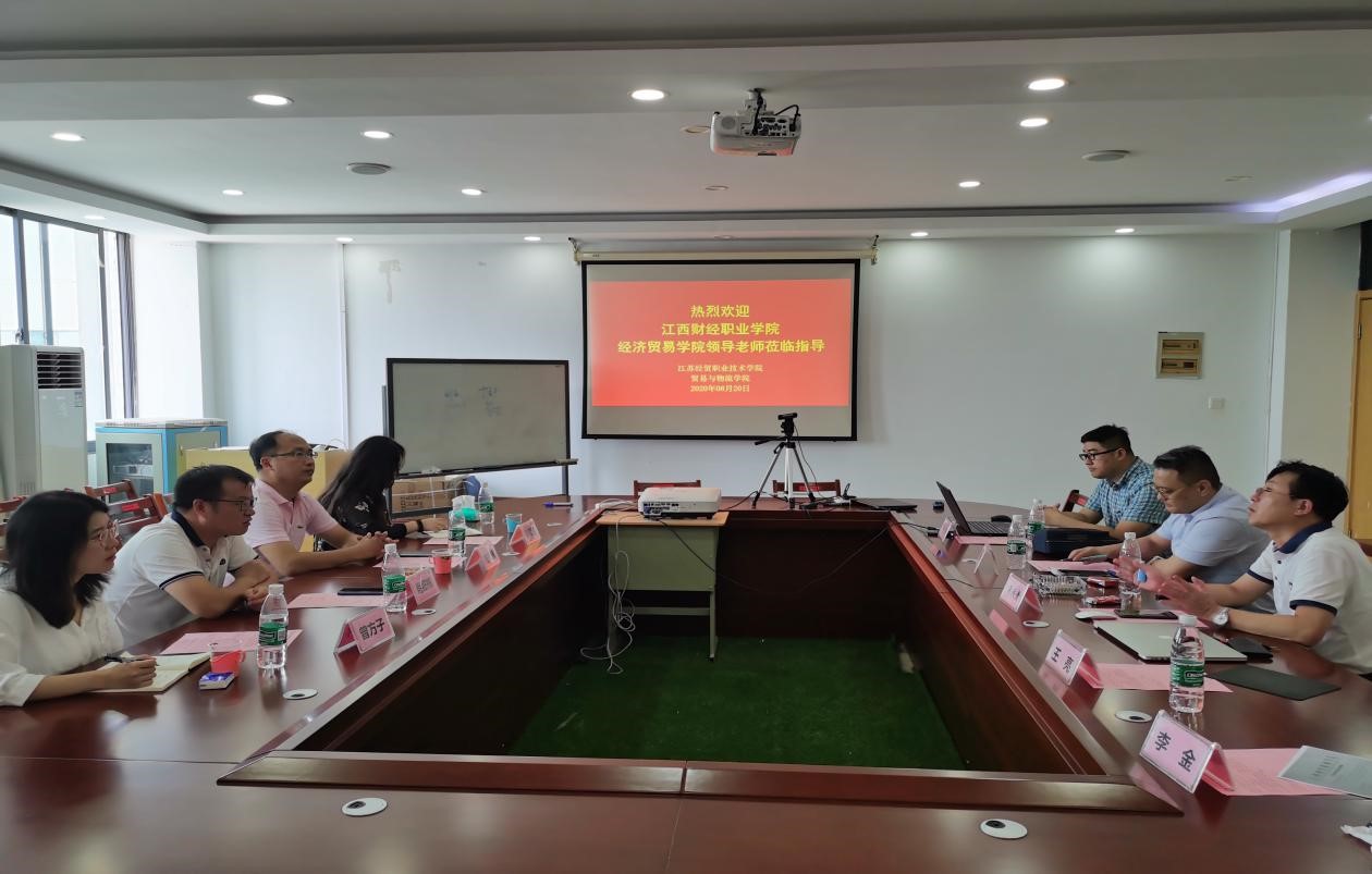 考察團一行,首先走訪了江蘇經貿職業技術學院,并與貿易與物流學院院長吳洪貴、電子商務教研室主任馮憲偉、南京奧派信息產業股份有限公司董事長徐林海等進行深入座談交流,吳院長介紹:貿易與物流學院是江蘇經貿職業技術學院辦學規模最大、綜合實力強、專業建設有特色的二級學院,也是國家級職業教育移動商務專業教學資源庫主持單位、全國跨境電商專門人才培養示范單位、國家級高等職業院校移動商務專業教學標準執筆單位,也是國家“雙高”校,高水平電子商務專業群建設單位。馮主任對高水平電子商務專業群建設思路、國家級教學團隊方案、一帶一路電商谷計劃、智慧商貿產業園等進行了詳細的講解。會后考察團實地參觀了全國電子商務協同教育中心、跨境電商指揮中心、移動商務、智慧零售、智慧物流、商務數據分析實訓室等,給考察團留下了深刻的印象。