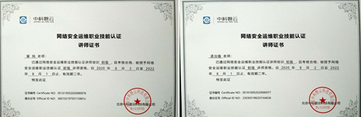 本次培訓主要從1+X證書制度的意義與政策解讀、網絡安全運維職業技能等級標準解讀、1+X證書制度及職業技能等級標準、網絡安全運維職業技能初級理論知識點講解以及網絡安全運維職業技能初級實踐操作指導等幾個方面展開。兩位教師認真學習相關理論知識與實踐操作,并順利通過網絡安全運維職業技能證書認證考試。