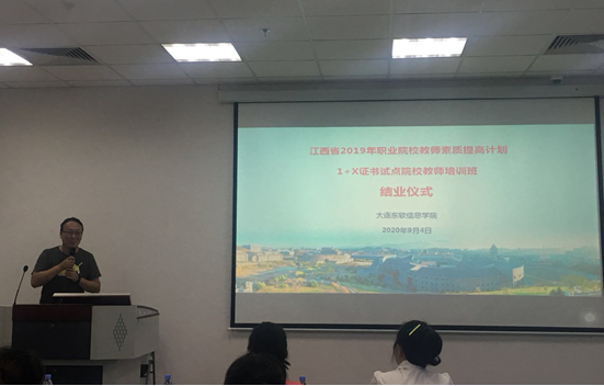 通過一周的學習,參訓教師收獲頗多,彭健老師還作為參訓教師代表上臺發言。回校后,參訓教師將認真總結培訓所學,積極傳播,努力推進相關“1+X”證書認證考試在我校的落地實施。