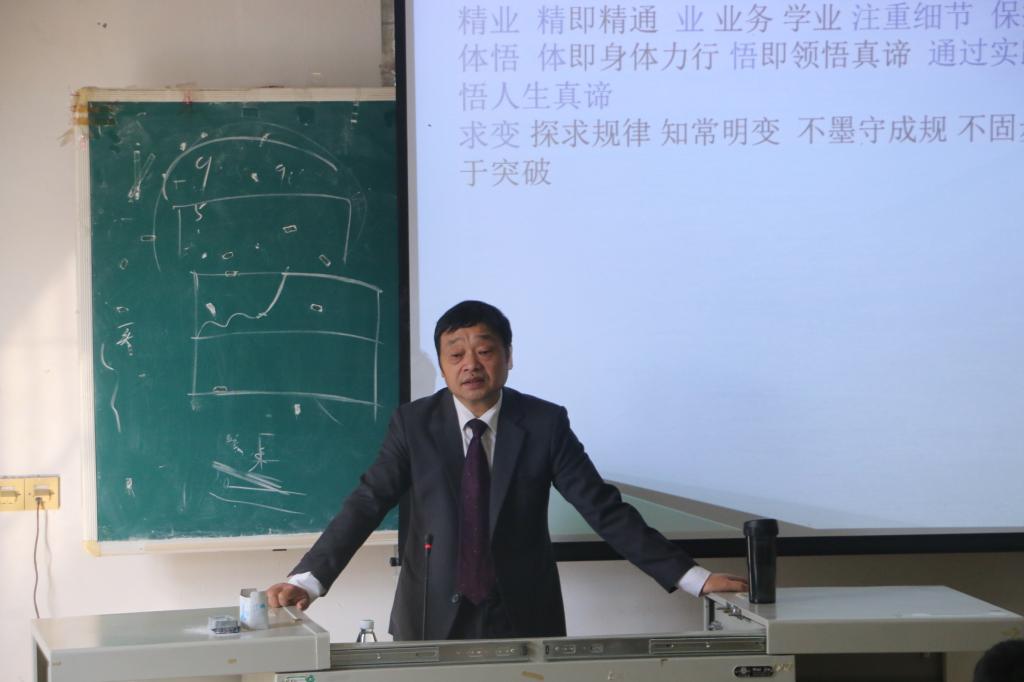 接著,李洪春教授通過介紹并解讀我校以及江西財經(jīng)大學(xué)的校訓(xùn),告知學(xué)生們要從“明德、體悟、精業(yè)、求愛”以及“信、敏、廉、毅”中學(xué)會學(xué)習(xí),學(xué)會做人,學(xué)會做事。