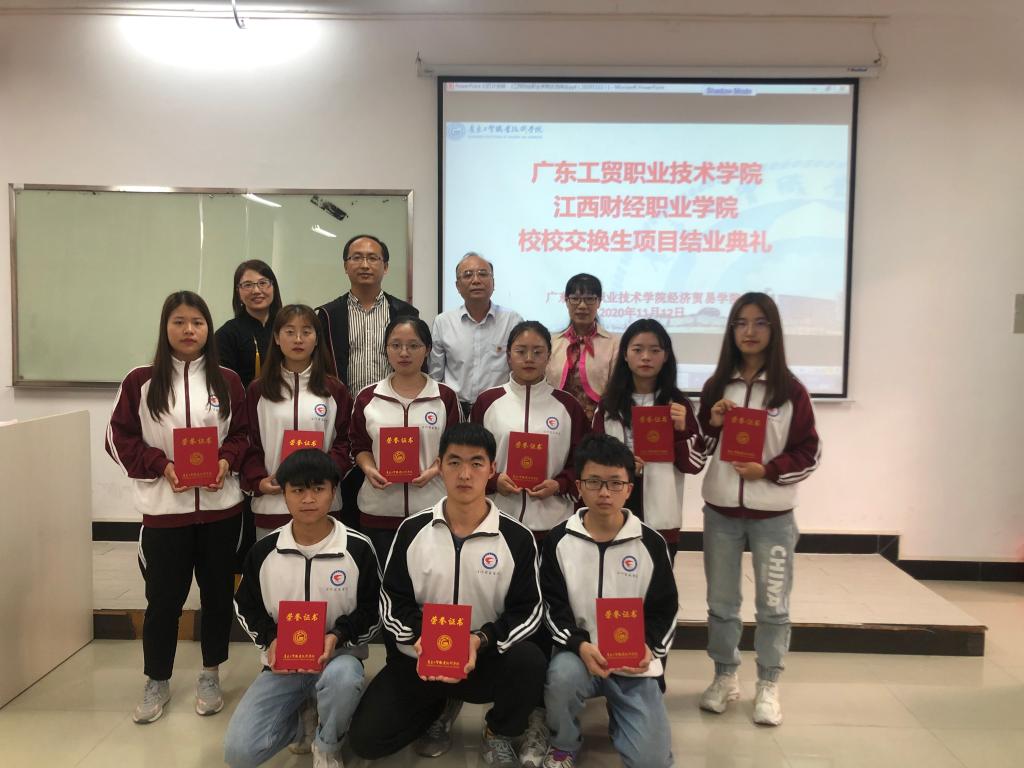 學(xué)習(xí)結(jié)束后,廣東工貿(mào)職業(yè)技術(shù)學(xué)院黨委副書記夏韓輝應(yīng)邀參加了校校交換生結(jié)業(yè)典禮,并為同學(xué)們頒發(fā)證書和紀(jì)念品。夏書記盛贊兩校經(jīng)貿(mào)學(xué)院校校合作內(nèi)容豐富、成效顯著、希望未來兩校合作更加深入。我校經(jīng)貿(mào)學(xué)院崔曉慧主任表達(dá)了對廣工貿(mào)熱情接待的感謝,發(fā)言表示,經(jīng)過學(xué)習(xí)交流,印象深刻,廣工貿(mào)校園環(huán)境優(yōu)美,同學(xué)朝氣蓬勃,學(xué)校發(fā)展穩(wěn)步攀升,黨建文化卓有特色,教師專業(yè)水準(zhǔn)高,愛崗敬業(yè),才華橫溢,校企雙十一實訓(xùn)項目有成效,聞韶班文化素質(zhì)培養(yǎng)留美名,并期待項目持續(xù)深入推進(jìn)。學(xué)生會主席張悅作為學(xué)生代表也相繼發(fā)言。廣工貿(mào)經(jīng)貿(mào)學(xué)院邱院長表示將盡快派出回訪團(tuán)隊。