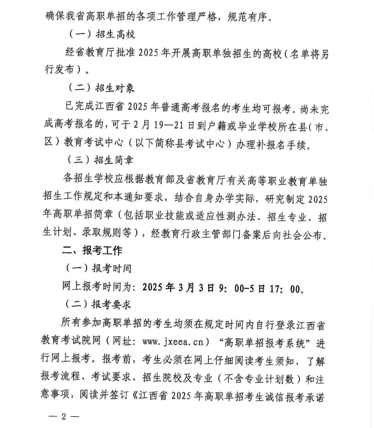 關(guān)于做好全省2025年高等職業(yè)教育單獨(dú)招生考試工作的通知