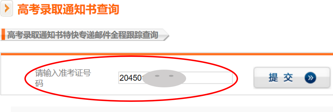 第三步:輸入準考證號碼,即可查詢通知書郵寄進度