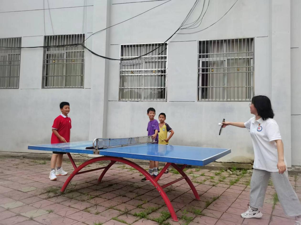 圖為隊員和學生們進行乒乓球比賽。中國青年網通訊員 龔佳懿 攝
