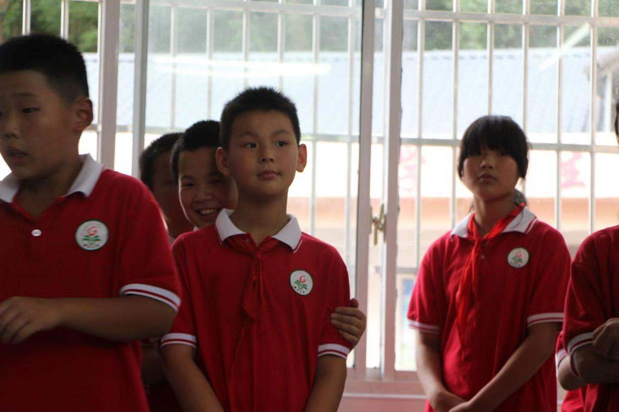 圖為學生們向隊員害羞微笑。中國青年網通訊員 龔爾潔 攝