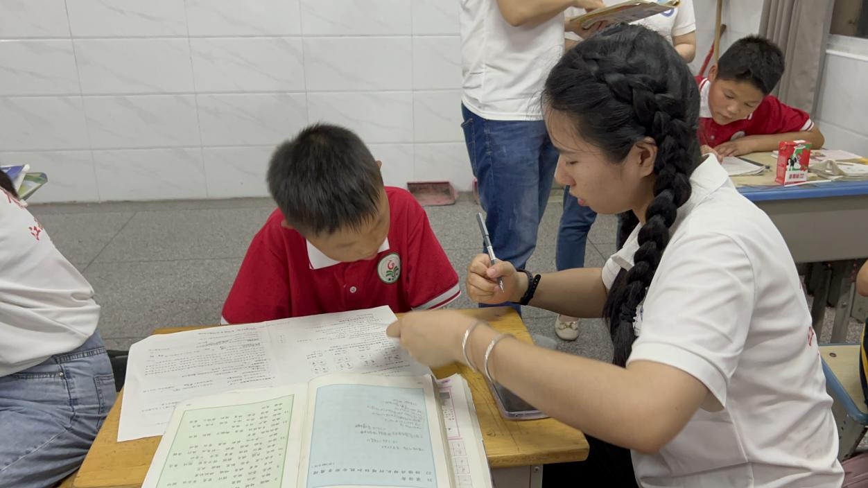 圖為隊員輔導學生們課后作業。中國青年網通訊員 龔爾潔 攝