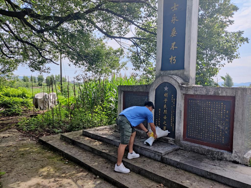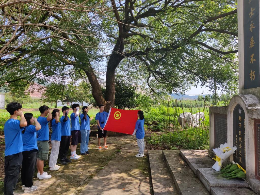 圖為青春筑夢隊在胡子良烈士墓處留影紀念。中國青年網(wǎng)通訊員 龔爾潔 攝