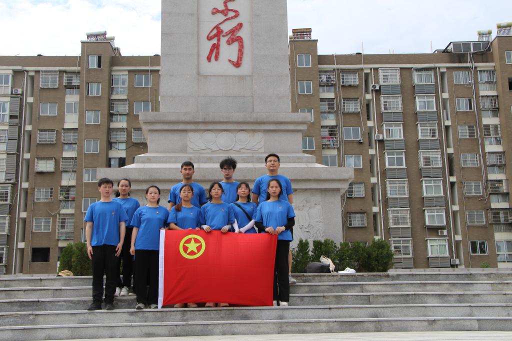 圖為青春筑夢隊在烈士紀念碑下留影。中國青年網(wǎng)通訊員 龔爾潔 攝