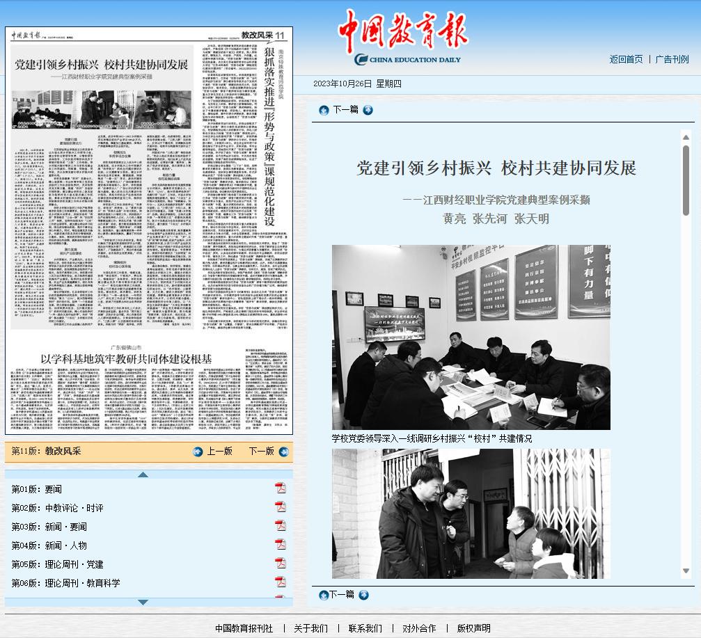 江西財經職業學院黨委以習近平新時代中國特色社會主義思想為指導,積極貫徹落實關于實施鄉村振興戰略的決策部署,充分發揮學校黨建引領、人才智庫、服務社會職能,以建強組織聚合力、振興產業助增收、爭資爭項辦實事、校村連心謀幸福等有效措施實現協同發展,扎實推進鄉村振興工作,打造“校村”共建樣板,取得了良好成效。
