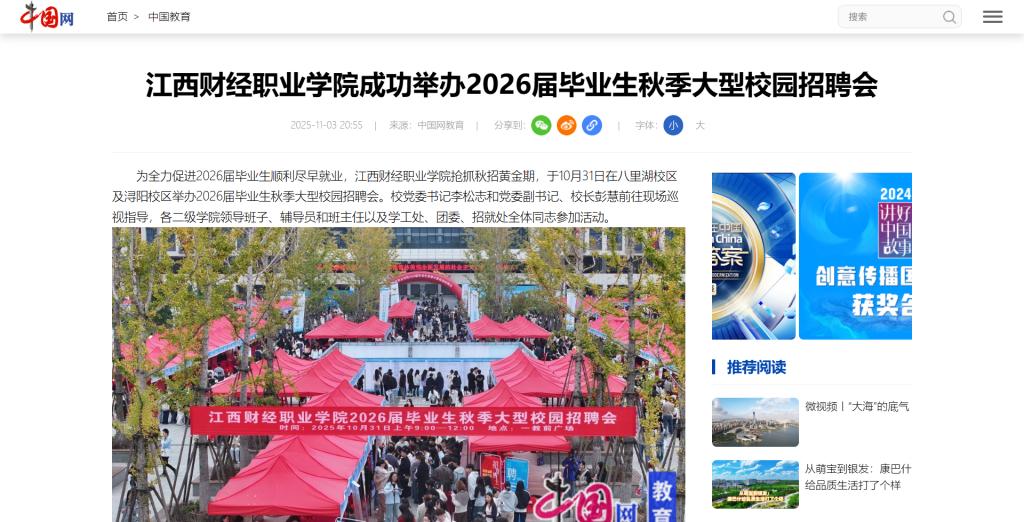 (中國網(wǎng)教育、江西新聞)江西財(cái)經(jīng)職業(yè)學(xué)院成功舉辦2026屆畢業(yè)生秋季大型校園招聘會