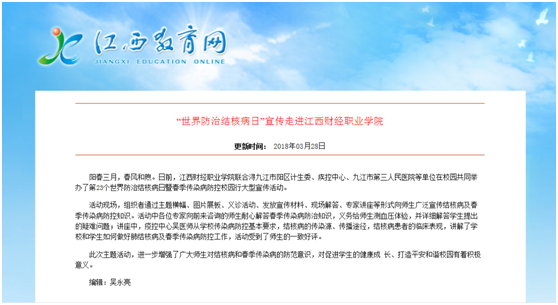 3月28日,江西教育網報道我校“世界防治結核病日”宣傳活動。