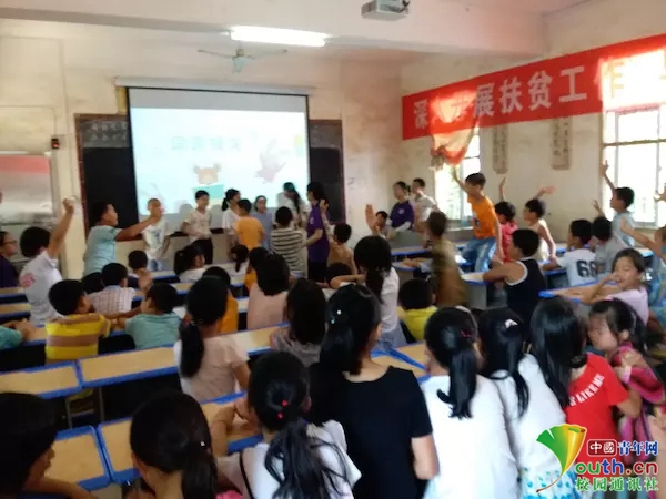 趣味英語課堂上,隊員們指導孩子們將自己的夢想寫在心愿卡上(中國青年網通訊員 邱大林 提供)