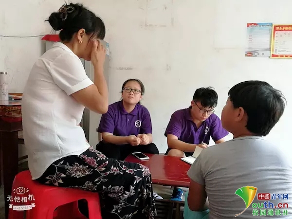 隊員們與留守兒童和他的奶奶進行親切訪談,講到動情處,奶奶不禁潸然淚下(中國青年網通訊員 李雨欣 提供)