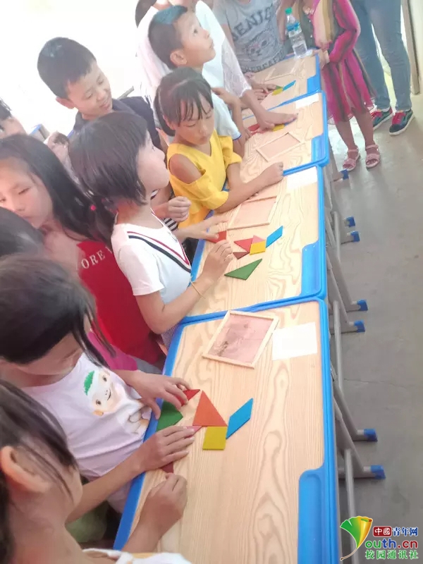 趣味數學課堂上,孩子們認真地拼著七巧板(中國青年網通訊員 詹曉童 提供)