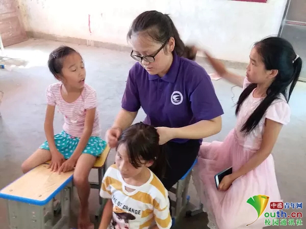 隊員教孩子們梳頭(中國青年網通訊員 陸艷紅 提供)