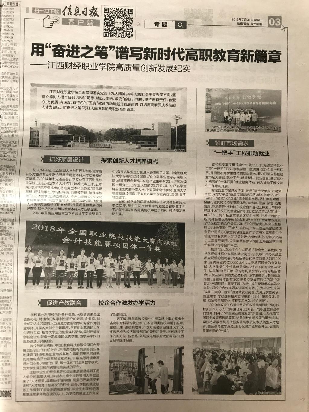 7月31日,《信息日報》整版報道我校近年來高質量發展紀實。