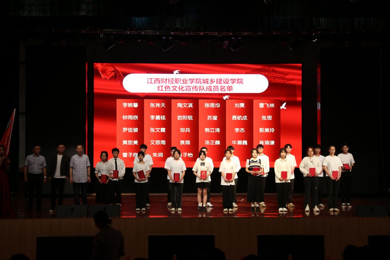 第一項議程為城鄉建設學院副院長呂亨龍,副院長張樂,黨總支副書記舒欣為江西財經職業學院城鄉建設學院紅色文化宣傳隊成員頒發聘書;