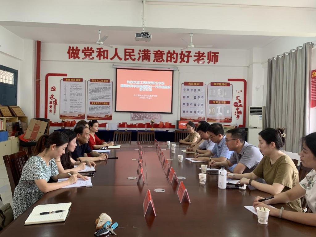 為提高我校國際教育學院商務英語專業建設水平和課程改革質量,推進主題教育走深走實,7月6日,國際教育學院副院長(主持工作)楊瑞一行7人赴九江職業大學考察學習。九江職業大學文化旅游學院副院長楊文(主持工作)及相關教研室主任和骨干教師熱情接待我院調研組一行。
