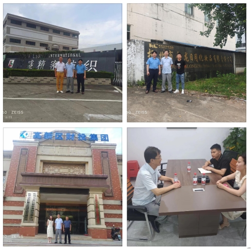 在撫州高新區審計局局長張明華校友、撫州高新區稅務局李騰科長、陳強興校友等陪同下,王勝華先后走訪了撫州市高新區財投集團有限公司、撫州市高新區數字經濟投資發展有限公司、撫州鼎盛紡織科技有限公司、江西嘉盛精密紡織有限公司、撫州市金龍日用化妝品有限責任公司等企業,了解了企業的發展、人才需求和職業能力要求,探討了校企合作的可能性和合作方式方法。此外,王勝華還拜訪了在撫州的部分校友,加強了學校與校友、校友與校友之間的聯系。