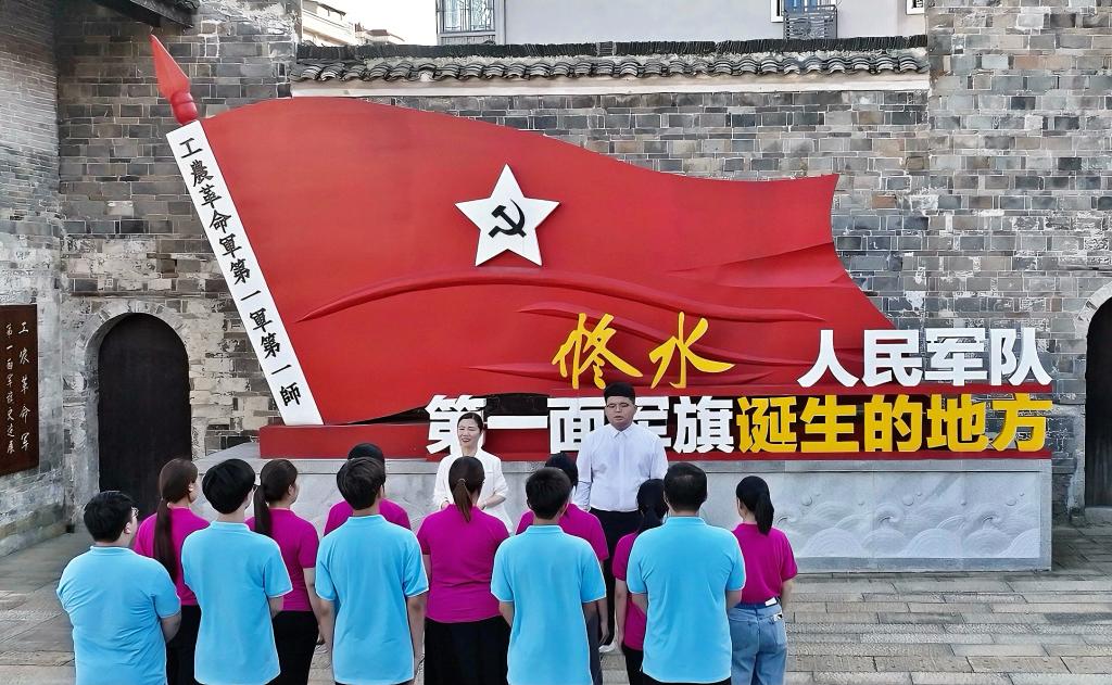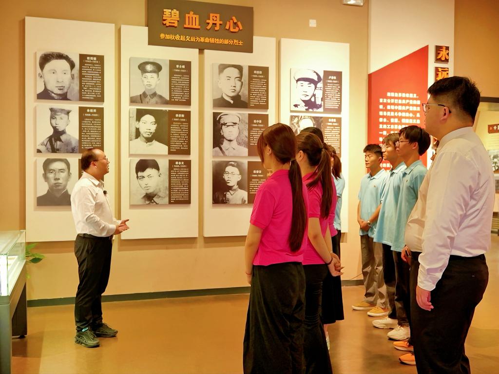 為全面深入貫徹習(xí)近平總書記考察江西重要講話精神,用豐富的紅色資源推進思政課建設(shè),進一步推動愛國主義教育,7月7日至8日,江西財經(jīng)職業(yè)學(xué)院思政課教師、城鄉(xiāng)建設(shè)學(xué)院黨總支書記胡紅霞帶隊赴九江市修水縣秋收起義修水紀(jì)念館開展暑期大思政實踐活動,思政課老師張?zhí)烀鳌⒗惡臀幕糜螌W(xué)院部分學(xué)生參加。