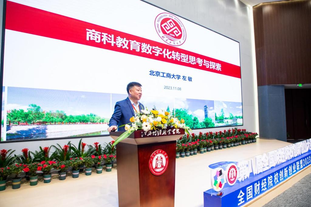 北京工商大學(xué)黨委常委、副校長(zhǎng)左敏教授結(jié)合國(guó)家政策、形勢(shì)變化、發(fā)展趨勢(shì)作了題為“商科教育數(shù)字化轉(zhuǎn)型思考與探索”的報(bào)告。
